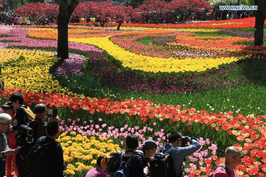 توافد عدد من المواطنين الصينيين والسياح الأجانب إلى حديقة النباتات في العاصمة الصينية بكين للاستمتاع بمشهد فريد يبعث البهجة في النفوس، ويخفف كثيرا من الضغوط.في مثل هذا الوقت من كل عام، تتفتح زهور التوليب في الحديقة، معلنة عن بدء فصل الربيع، وتشكل تلك الزهور، بالإضافة إلى زهور أخرى، بألوانها المختلفة، لوحة فنية رائعة تسر الناظرين.