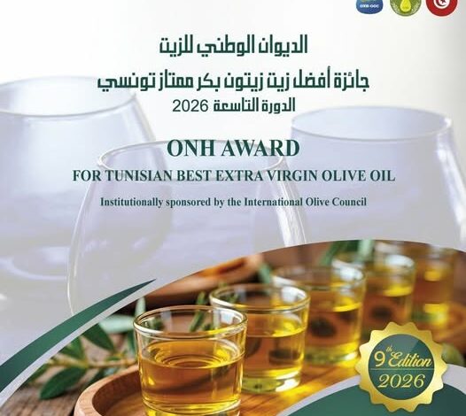 جائزة الديوان الوطني للزيت لأفضل زيت زيتون بكر ممتاز تونسي” الدورة التاسعة 2026