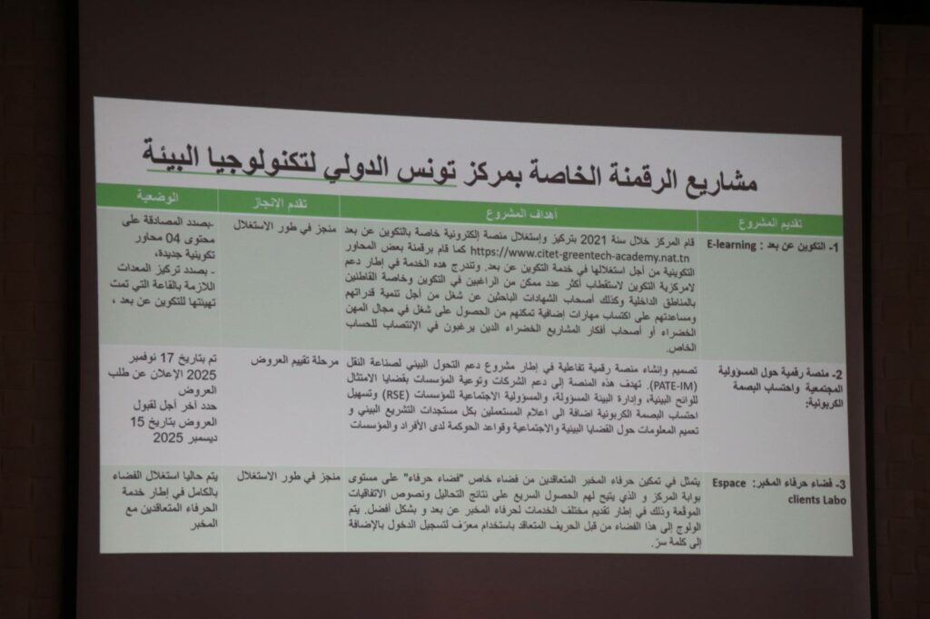 الاثنين 05 جانفي 2026، على اجتماع لجنة القيادة لمتابعة مشاريع التحوّل الرقمي لقطاع البيئة، وذلك بحضور إطارات عن رئاسة الحكومة ووزارة البيئة.